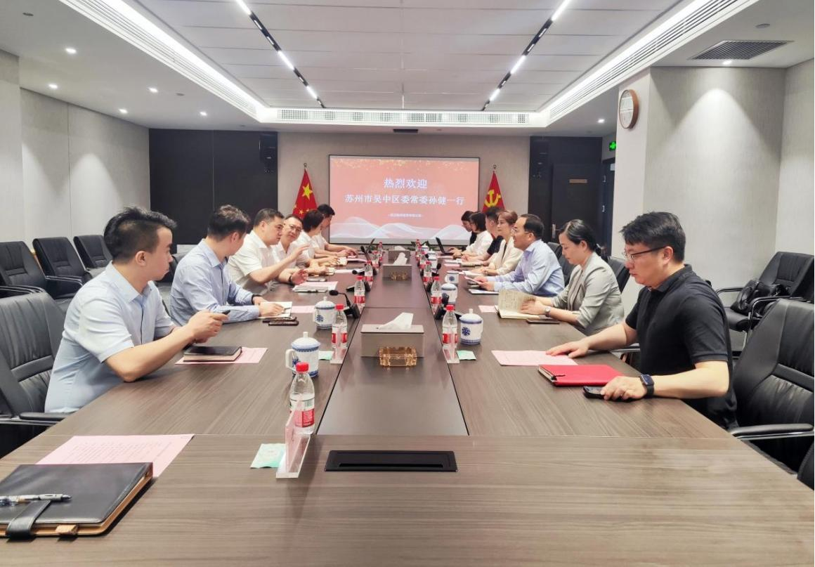5月23日下午,武漢信用公司黨委副書記、總經理,武漢融資租賃公司董事長李劍接待來訪的蘇州市吳中區委常委、太湖度假區黨工委副書記、管委會副主任孫健一行,雙方就開展合作、服務發展進行座談交流。